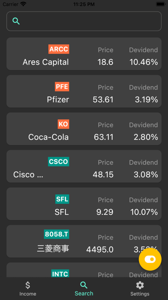 テーマの変更、このアプリについて、銘柄のリセットなどを操作可能です。